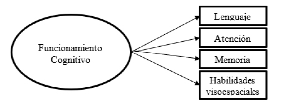 Figura 1. Estructura factorial del Addenbrooke´s Cognitive Examination. (Cancino, Rehbein - Felmer, Ortiz, 2018