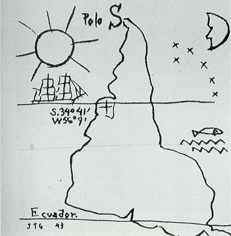 El texto del artista que acompaña el dibujo apela a la conformación de una cultura y arte propios originados en Uruguay, “He dicho Escuela del sur; porque en realidad, nuestro norte es el sur. No debe de haber norte, para nosotros, sino en oposición a nuestro Sur” (Torres-García, 1944, p. 213).