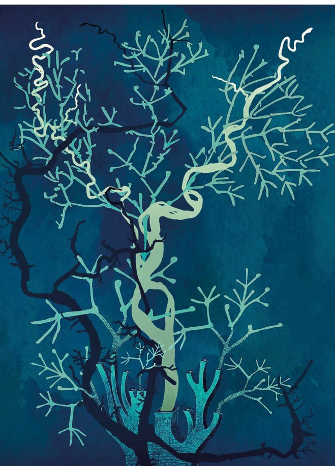 Las obras también contienen la silueta de dibujos realizados por Charles Darwin, Erns Haeckel, Carl Woese, Robert Whittaker entre otros científicos y naturalistas de distintas épocas. Estos gráficos, que se asemejan a formas vegetales, sirvieron para conceptualizar diferentes teorías científicas. Gracias al símil visual del árbol, los postulados biológicos se ilustran y se vuelven más comprensibles para el gran público. Como por ejemplo, en los bosquejos realizados por Darwin en 1837, registrados en su diario de viaje. Estos bocetos de pequeñas ramitas o arbustos sirvieron para conceptualizar la teoría de La evolución de las especies y apuntalar las primeras hipótesis filogenéticas en las ciencias biológicas. Como diría Silvia Ribera Cusicanqui, estas nuevas imágenes se yuxtaponen de forma ch’ixi, son dos ideas que coexisten, cohabitan, pero no se mezclan.