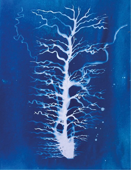 Cartografías para un árbol de agua (Cartographies for a Water Tree) explores the relationship between science, technology, and landscape through a visual re-reading of historical river maps from Ecuador and South America. Based on maps from the seventeenth to the twentieth century, the project extracts and transforms river outlines—such as those of the Guayas and the Amazon— into tree-like or vegetal structures. This process of translation and transmutation challenges the modern impulse to measure and classify the world, proposing instead a poetics of flow and coexistence. The works engage with scientific drawings by Darwin, Haeckel, Whittaker and others, in which the tree becomes a metaphor for knowledge and evolution. The resulting cyanotypes operate as mnemonic cartographies: images that condense memory, territory, and time, revealing a symbolic landscape where science and myth intertwine.